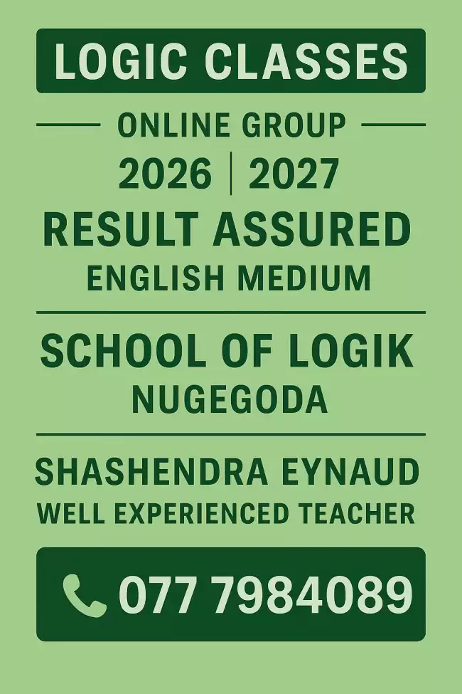 Description:“Join our online group Logic classes (English Medium) for 2026–2027 at the School of Logik, Nugegoda. Learn from well-experienced teacher Shashendra Eynaud with result-assured training for academic success.”